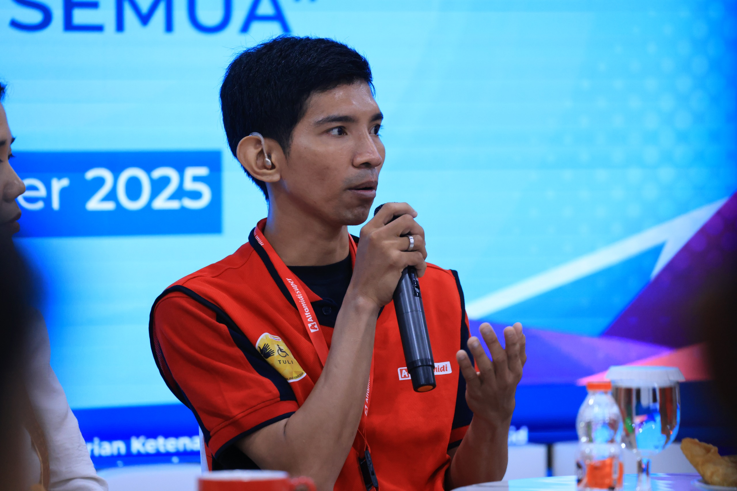 Ferdiansyah percaya diri menceritakan pengalaman bekerjanya di PT Midi Utama Indonesia Tbk (Alfamidi) sebagai Alfability. Pekerja disabilitas tuna rungu ini membuktikan keterbatasan tak menjadi penghalang untuk maju bersama Alfamidi.