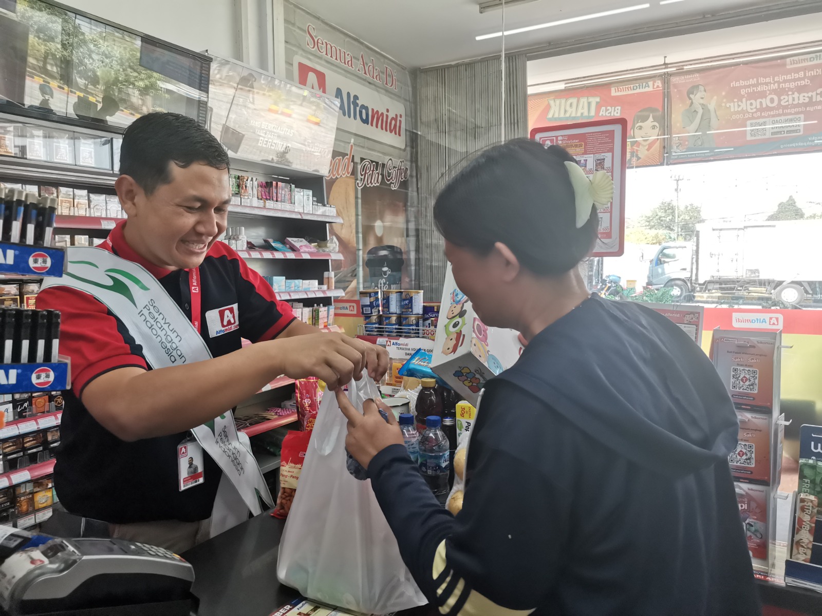 Peringati Harpelnas, Kepala Cabang Alfamidi Layani Pelanggan di Toko