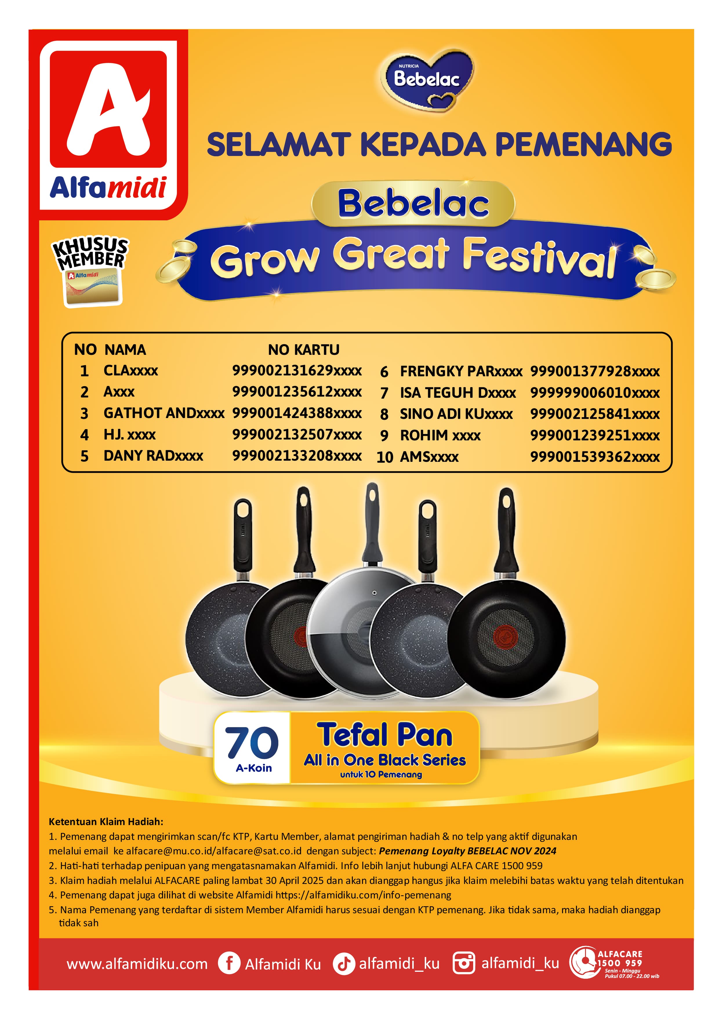 - Hati-hati terhadap penipuan yang mengatasnamakan Alfamidi. Info lebih lanjut hubungi ALFA CARE 1500